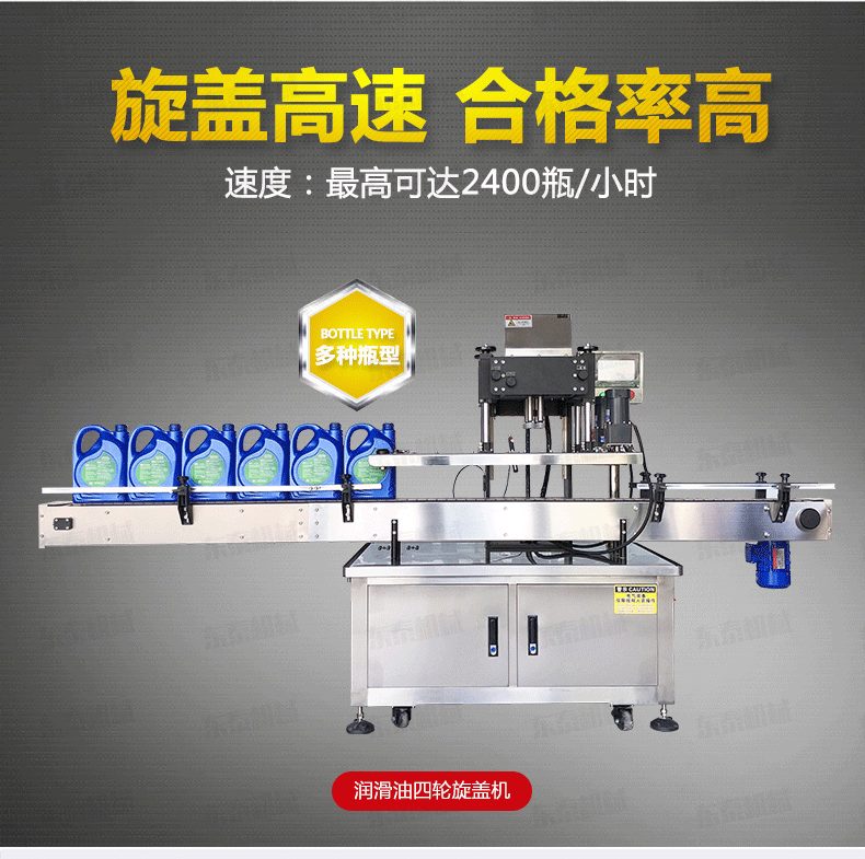 機油自動搓蓋機電氣控制運動,穩(wěn)定性強;  設(shè)有定位裝置,旋蓋標準,操作方便;  鎖蓋范圍寬,可鎖不同形狀規(guī)格的瓶蓋;解決了噴頭、泵頭、噴霧泵、手扣式噴頭旋蓋難的