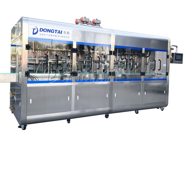 600KG,內(nèi)部設(shè)有阻擋板,避免油品輸入過(guò)程油品外冒,同時(shí)保證灌裝精度;儲(chǔ)油箱位置設(shè)在灌裝機(jī)頂部,自帶可視液位計(jì),頂部箱蓋大包圍設(shè)計(jì)并且可以打開,具備排氣功能(排出氣泡等);灌裝頭整體上升方式平穩(wěn),不產(chǎn)生震動(dòng),高度及寬度可調(diào)。