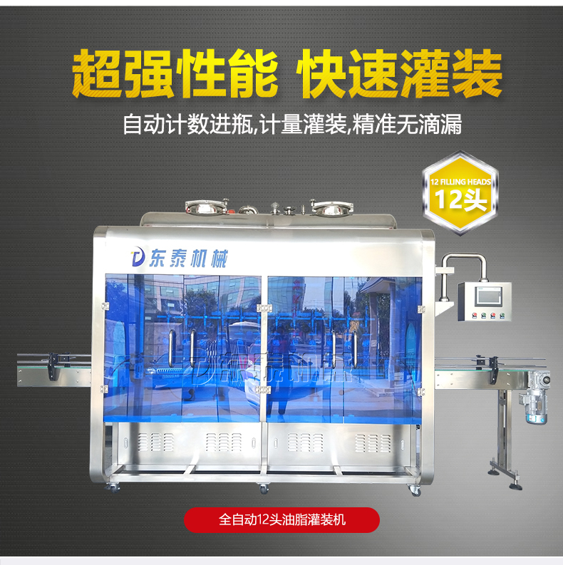 這款油脂灌裝機能夠適用多種流體5kg-30kg的計重量灌裝。自行完成計數進瓶、計重量灌裝、輸送出瓶等一系列的智能操作。 特別是適用于水劑、食用油,潤滑油的定量灌裝,是食品,醫(yī)藥,化妝品以及精細化工等多個行業(yè)的包裝機。本機采用的是編程控制器(PLC)、高速工控組態(tài)軟件進行實時監(jiān)控的控制,使用調節(jié)更加的方便。整機是按GMP標準要求制作的,各管路連接采用快裝方式,拆卸清洗方便,與物料接觸部位及外露部位均采用了優(yōu)質不銹鋼制造
