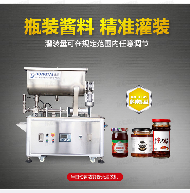 這款辣椒醬灌裝機是我公司結(jié)合自身十幾年的生產(chǎn)經(jīng)驗,加之灌裝機技術(shù),進行設(shè)計的產(chǎn)品,其結(jié)構(gòu)更加簡單、操作更加簡便。小型辣椒醬灌裝機可灌裝顆粒漿狀流體物料,特別適用于調(diào)味品中帶顆粒并且濃度較大的辣椒醬、火鍋底料等粘稠醬類的灌裝,配置的自動攪拌器,保證了醬和油的充分混合,又稱為辣椒醬灌裝機、花生醬灌裝機、豆瓣醬灌裝機、果醬灌裝機,芝麻醬灌裝機、粘稠醬類灌裝機、牛肉醬灌裝機